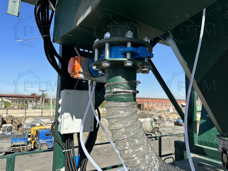 На выгрузке цемента и воды установлена пневматическая заслонка, на выгрузке химических добавок установлен седельный клапан. В автоматическом режиме работы бетонного завода, все взвешивания и выгрузка материалов происходят в автоматическом режиме.