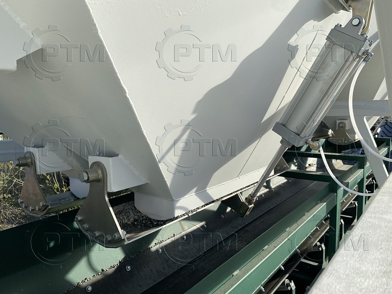 Баки устанавливаются на раме, каждый бак имеет две дозирующие заслонки, на заслонку установлен пневмоцилиндр, он отвечает за открытие и закрытие заслонки. Так же бункеры оборудованы вибродвигателями Oli MVE/300 (Италия), они необходимы для встряхивания инертного материала.