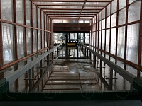Данные рельсовые пути выполнены из профильной трубы, рельсовые пути на стойках используются для перемещение конвейерных оснований, рельсовые пути без стоек- это пути для перемещение передаточной тележки, с ее помощью конвейерные основания перемещают между камерами созревания и сушки массивов. Рельсовый путь крепится к бетонному основанию анкерами.