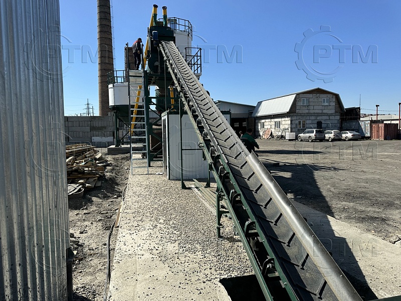 Ленточный конвейер имеет рамную конструкцию с фермами. В нижней и верхней части ленточного конвейера устанавливаются барабаны с футеровкой, ведущий барабан приводится в движение при помощи червячного мотор-редуктора. Конвейерная лента шевронная закрытого типа. В нижней части конвейера имеется приемный бункер, конвейер имеет от бортовку, это необходимо чтобы инертные материалы не просыпались с ленточного конвейера при транспортировки инертных материалов в бетоносмеситель. Все конвейерные ролики оцинкованные.