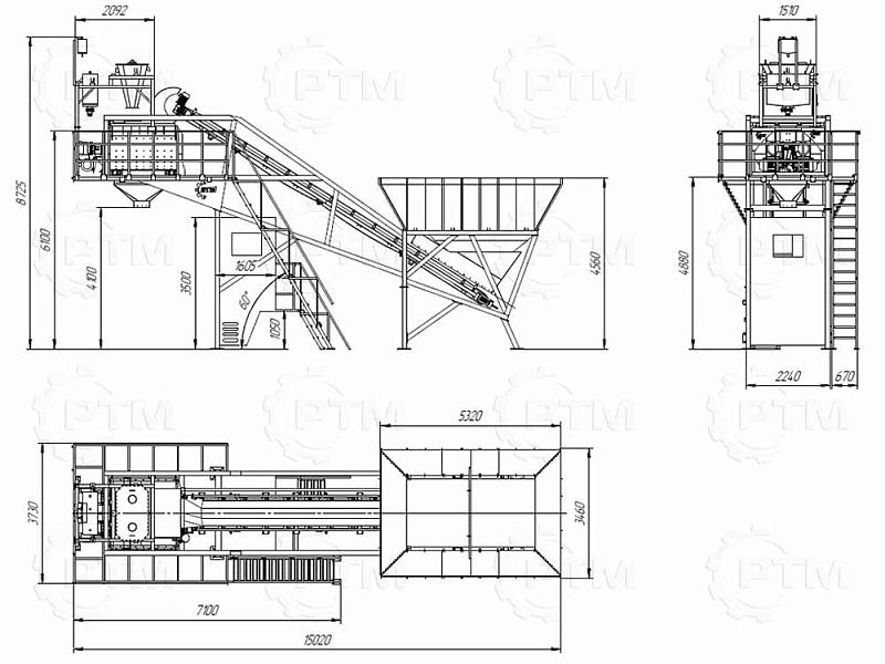 1.      Дозирующий комплекс ДРКМ-40 (4 секции по 10 м3): состоит из двух до четырех бункеров для хранения инертных материалов (щебень, песок, отсев). На каждом бункере имеется два пневмо- затвора, необходимых для точной дозации материалов. При дозировании материалы попадают на весовой ленточный конвейер, весовые датчики фирмы CAS Ю. Корея, при наборе нужного количества материалов, заслонки закрываются, подача прекращается. Каждый бункер оснащен вибродвигателем MVE 300/3.