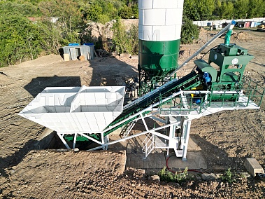 Данный завод производительность от 75 до 95 м3/час товарного бетона марки м200 или раствора. Объём загрузки бетоносмесителя 2250 литров, объем выгрузки готового бетона 1500 литров. Один цикл не более 55 секунд. Время работы цикла регулируется оператором бетонного завода.