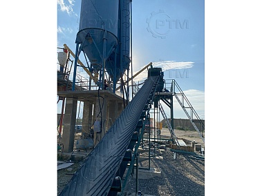2.      После набора нужного количества материалов инертные попадают на наклонный ленточный конвейер с шевронной лентой. Ширина ленты 600 мм, длинна конвейера 16 метров.