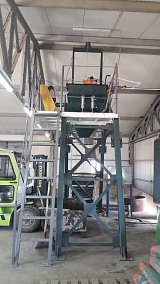 Данный завод состоит из жесткой рамной конструкции, одновального бетоносмесителя на 500 литров по загрузке, скипового бака с весовой площадкой и лебедки для подъема инертных материалов.