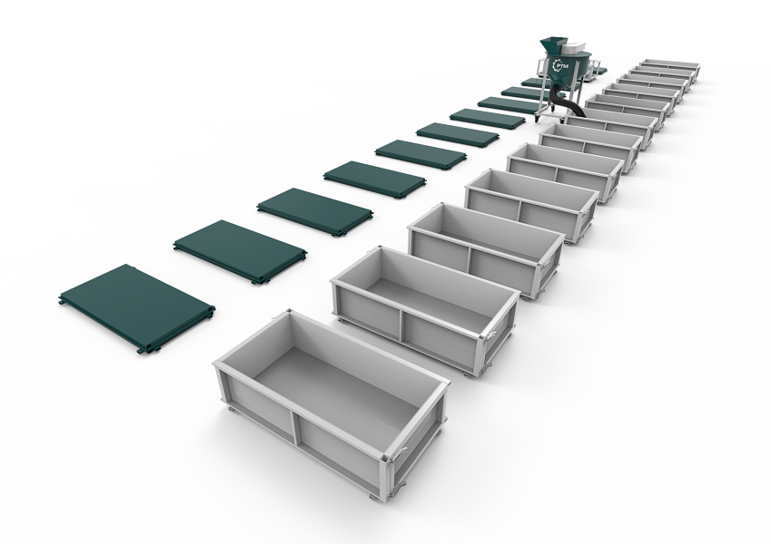 3.     Борта форм: используется для формирования блоков из смеси. Стандартный размер формы мини- линии 1200*600 мм. Входит шесть блоков размерами 600* 200* 300, мм.