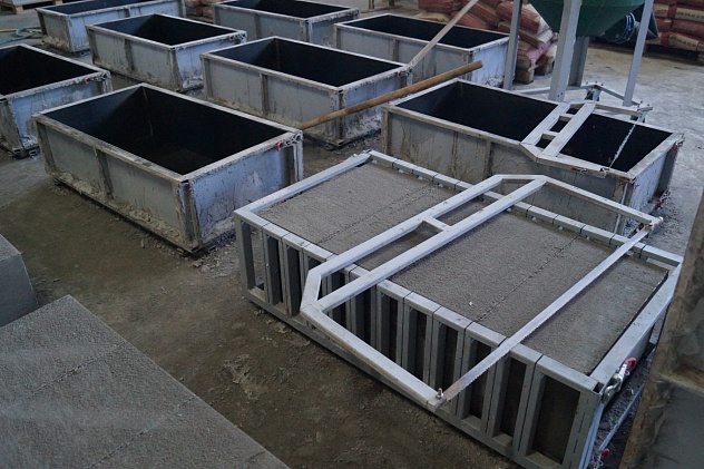 Линия этого исполнения, не превышает производительности 15 м3/сутки. Производительность зависит от количества форм для заливки газобетонной смеси.