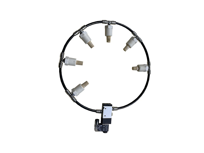 Система аэрации состоит из пневматической трубки, жиклеров и пневмораспределителя. При подаче команды от оператора на открытие пневмораспределителя, в систему поступает поток воздух, он проходит через жиклер аэрации и далее попадает с силос цемента. При подаче воздуха происходит разрыхление цемента и его обрушение в конус силоса.