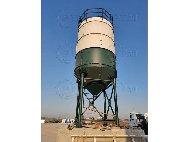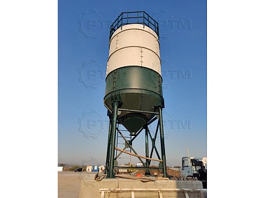 Силос выполнен из цилиндрической банки и конуса, что обеспечивает естественное движение цемента. Он имеет закрытую верхнюю часть для защиты материала от неблагоприятных погодных условий.
