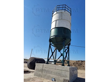 Силос выполнен из цилиндрической банки и конуса, что обеспечивает естественное движение цемента. Он имеет закрытую верхнюю часть для защиты материала от неблагоприятных погодных условий.