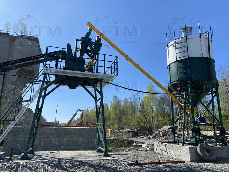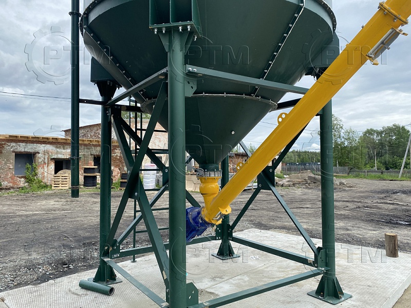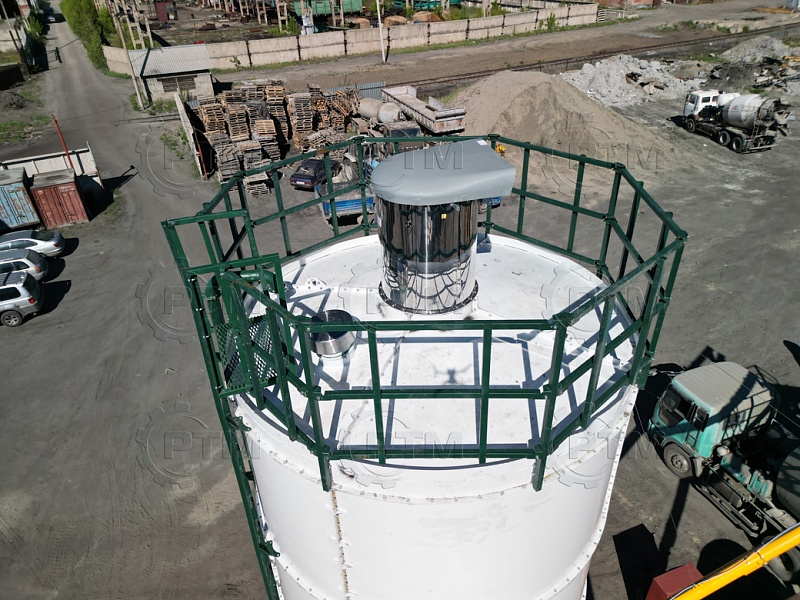 Силос выполнен из цилиндрической банки и конуса, что обеспечивает естественное движение цемента. Он имеет закрытую верхнюю часть для защиты материала от неблагоприятных погодных условий.