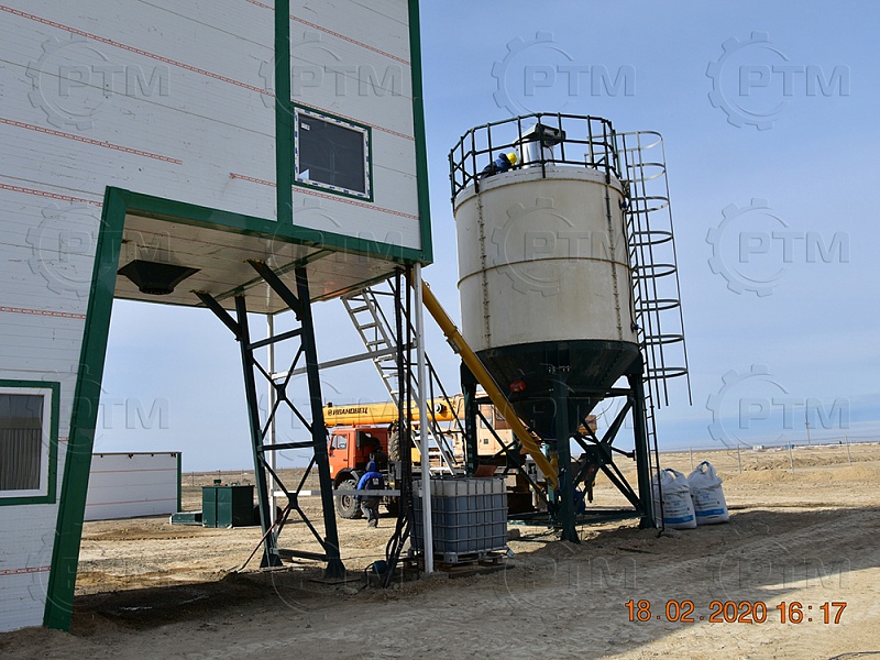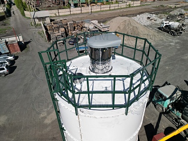 Силос цемента предназначен для хранения цемента на площадке. Силос принимает цемент по трубе закачки от цементовоза, сохраняет его от внешних воздействий. Далее цемент подается при помощи шнекового конвейера на блок дозаторов. На блоке дозаторов взвешивается и попадает в производственный цикл бетона на бетонном заводе.
