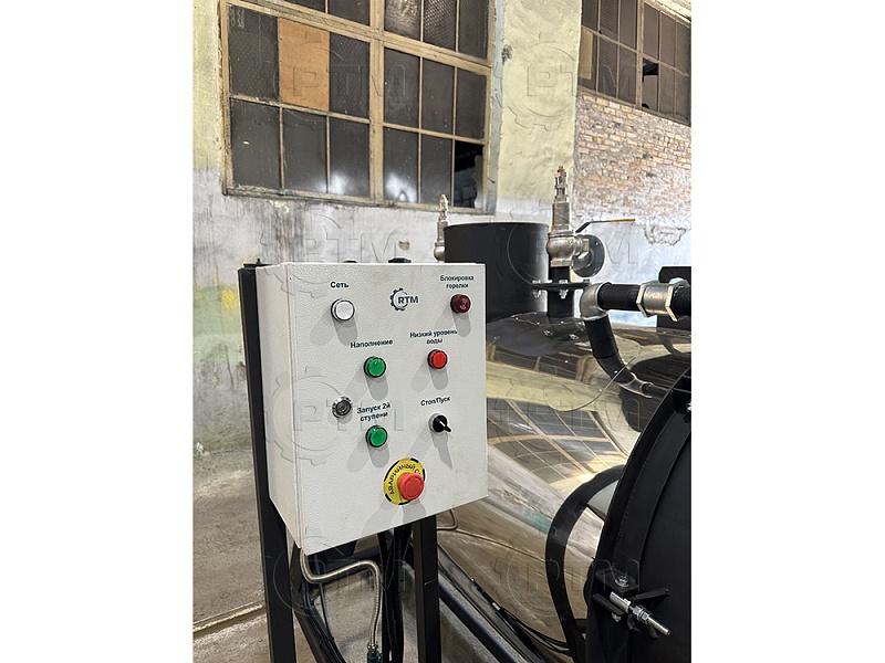 Парогенератор- паровой котёл вырабатывает пар путём сжигания газового или дизельного топлива. Рабочее давление парогенератора 0,07 мПа, таким образом парогенератор не требует регистрации в Ростехнадзоре.