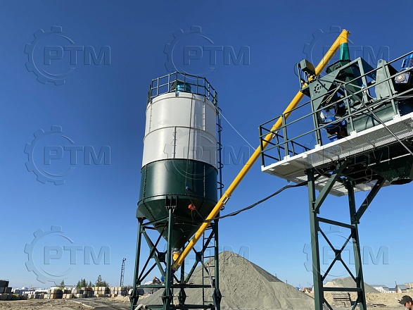 Данный завод производительность от 10 до 15 м3/час товарного бетона марки м200 или раствора. Объём загрузки бетоносмесителя 450 литров, объем выгрузки готового бетона 250 литров. Один цикл не более 55 секунд. Время работы цикла регулируется оператором бетонного завода.