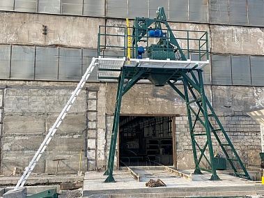 2.      После набора нужного количества материалов инертные попадают в скиповый бак, далее скиповый бак поднимается и высыпает материалы в бетоносмеситель.