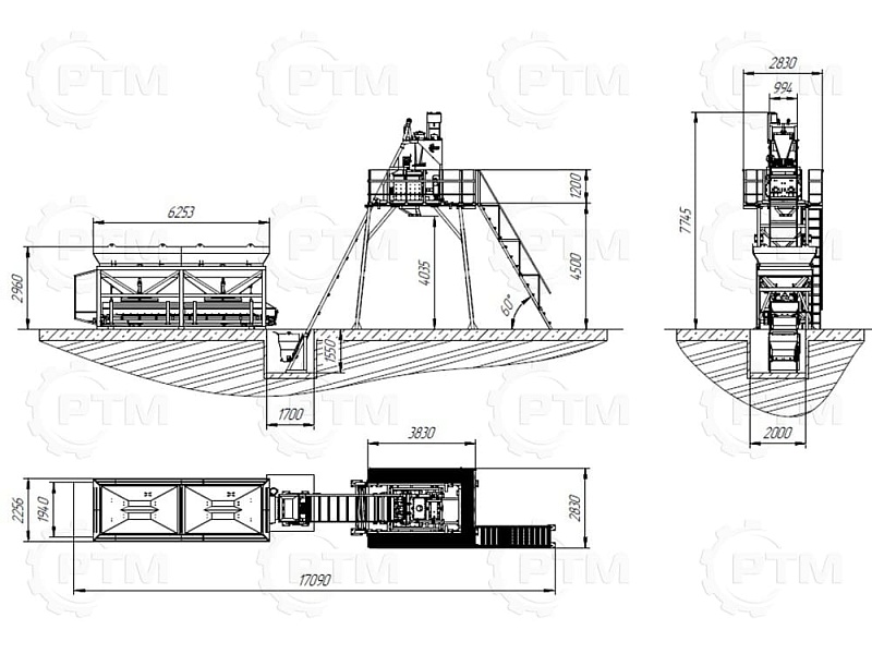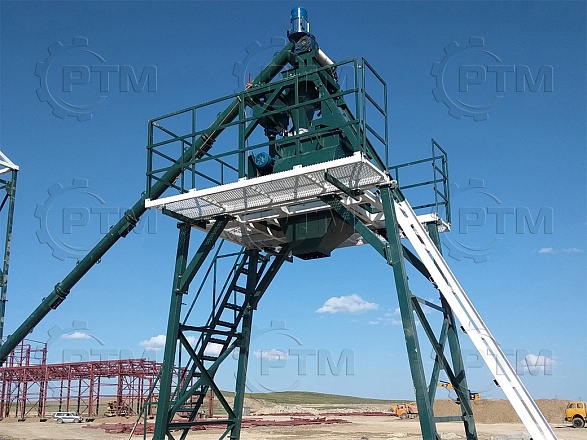 Скиповый бетонный завод с двухвальным бетоносмесителем — это производственное оборудование, которое используется для смешивания и производства бетонной смеси с высокой производительностью и качеством, завод автоматический, принцип “одна кнопка” Он состоит из следующих основных компонентов: