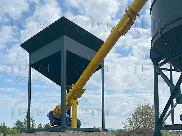5.     Склад цемента и подача в блок дозаторов. При необходимости завод комплектуется складом цемента (силосом или растаривателем биг бэгов). Силос или растариватель биг бэгов (опция) необходим для хранения цемента и различных сухих смесей. Транспортировка из силоса происходит с помощью шнекового конвейера. Силос необходимо подбирать из расчета трехдневного запаса цемента.