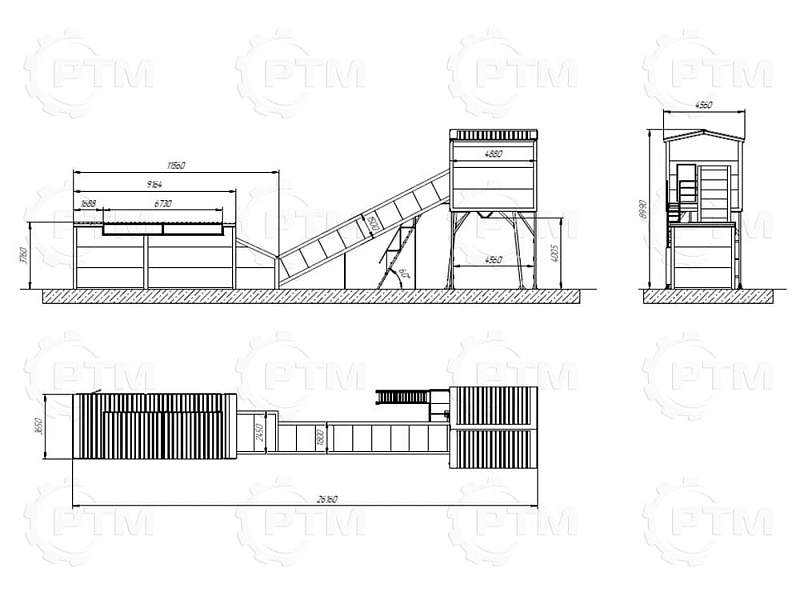 2.      После набора нужного количества материалов инертные попадают на наклонный ленточный конвейер с шевронной лентой. Ширина ленты 600 мм, длинна конвейера 16 метров.