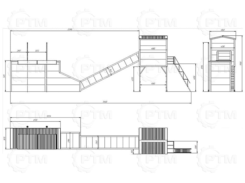 2.      После набора нужного количества материалов инертные попадают на наклонный ленточный конвейер с шевронной лентой. Ширина ленты 600 мм, длинна конвейера 16 метров.