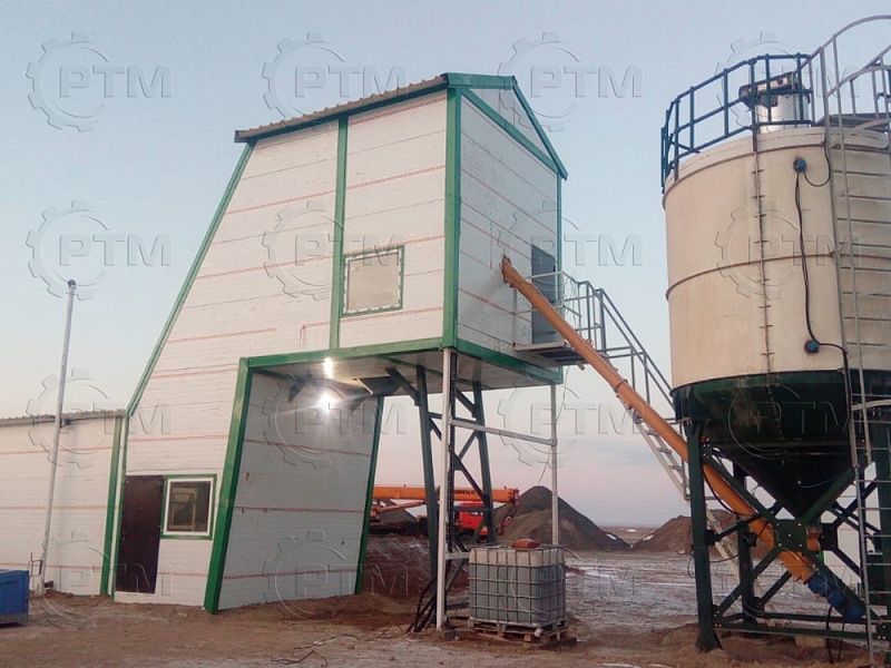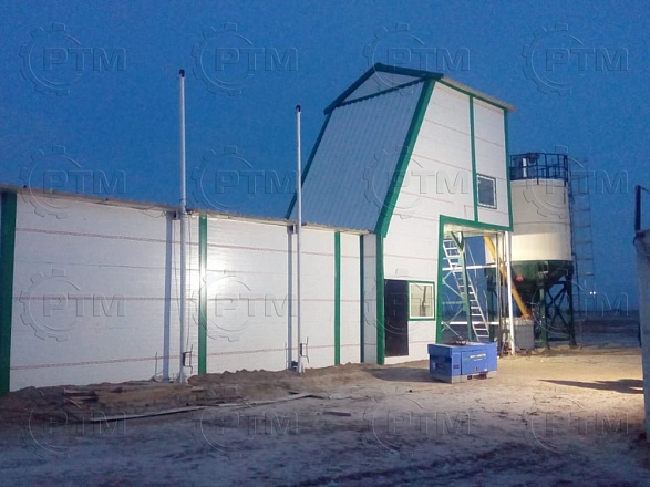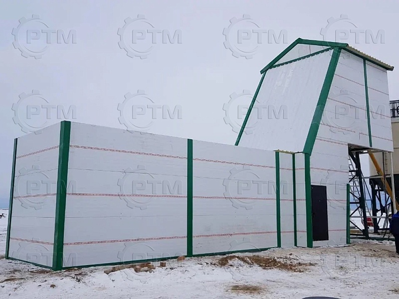 Зимний бетонный завод с двухвальным бетоносмесителем — это производственное оборудование, которое используется для смешивания и производства бетонной смеси с высокой производительностью и качеством, завод автоматический, принцип “одна кнопка” Он состоит из следующих основных компонентов:
