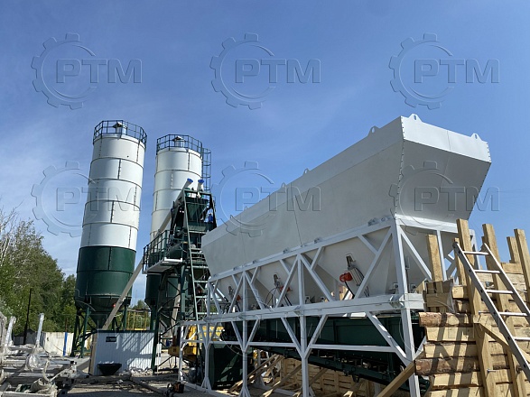 Данный завод производительность от 70 до 90 м3/час товарного бетона марки м200 или раствора. Объём загрузки бетоносмесителя 2250 литров, объем выгрузки готового бетона 1500 литров. Один цикл не более 55 секунд. Время работы цикла регулируется оператором бетонного завода.